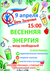 Весна пришла и вместе с солнцем подарила жителям посёлка Светлый яркие впечатления от Дня здоровья, организованного сотрудниками культурно-досугового комплекса «Виктория» совместно с библиотекой поселка.